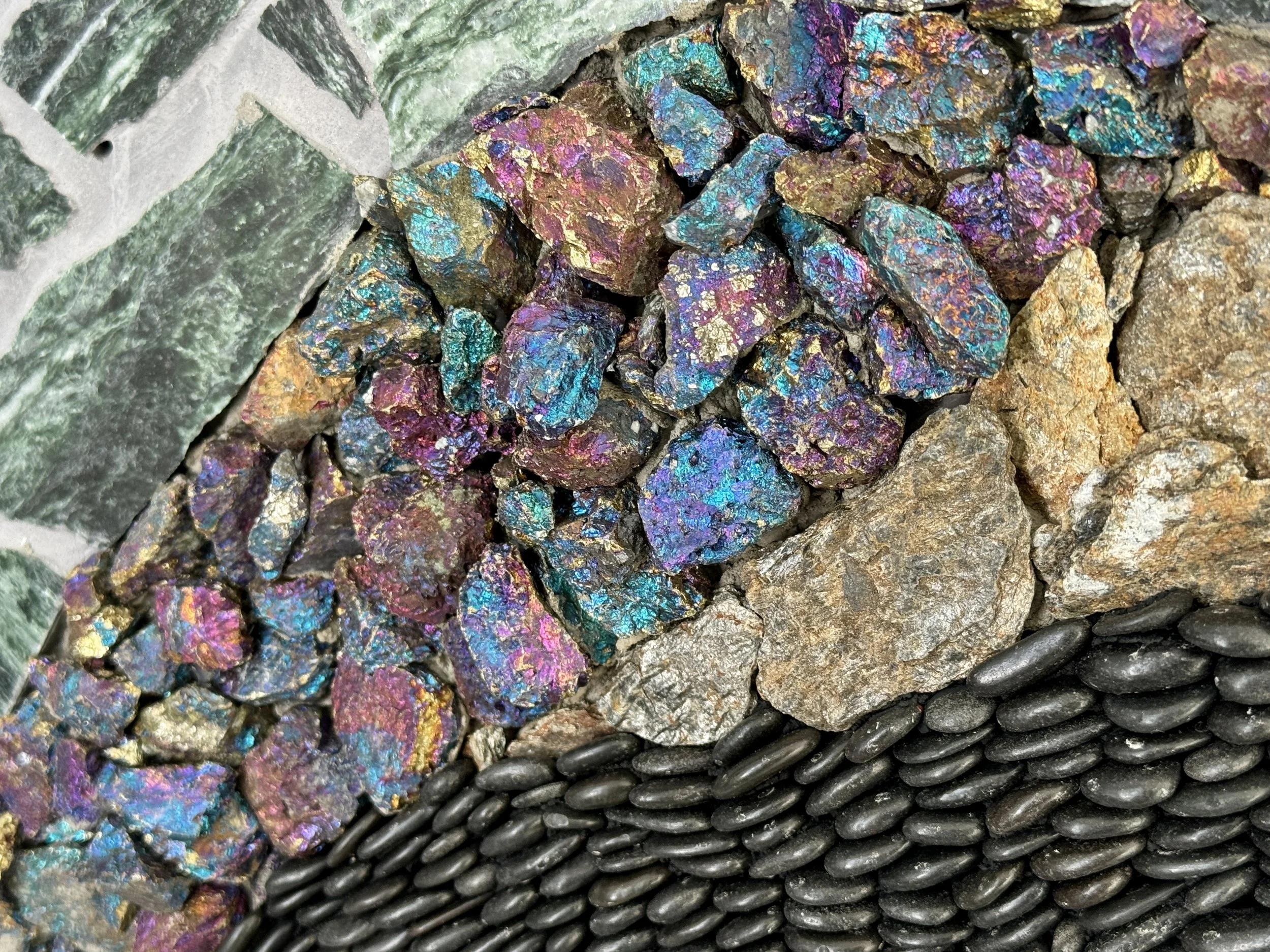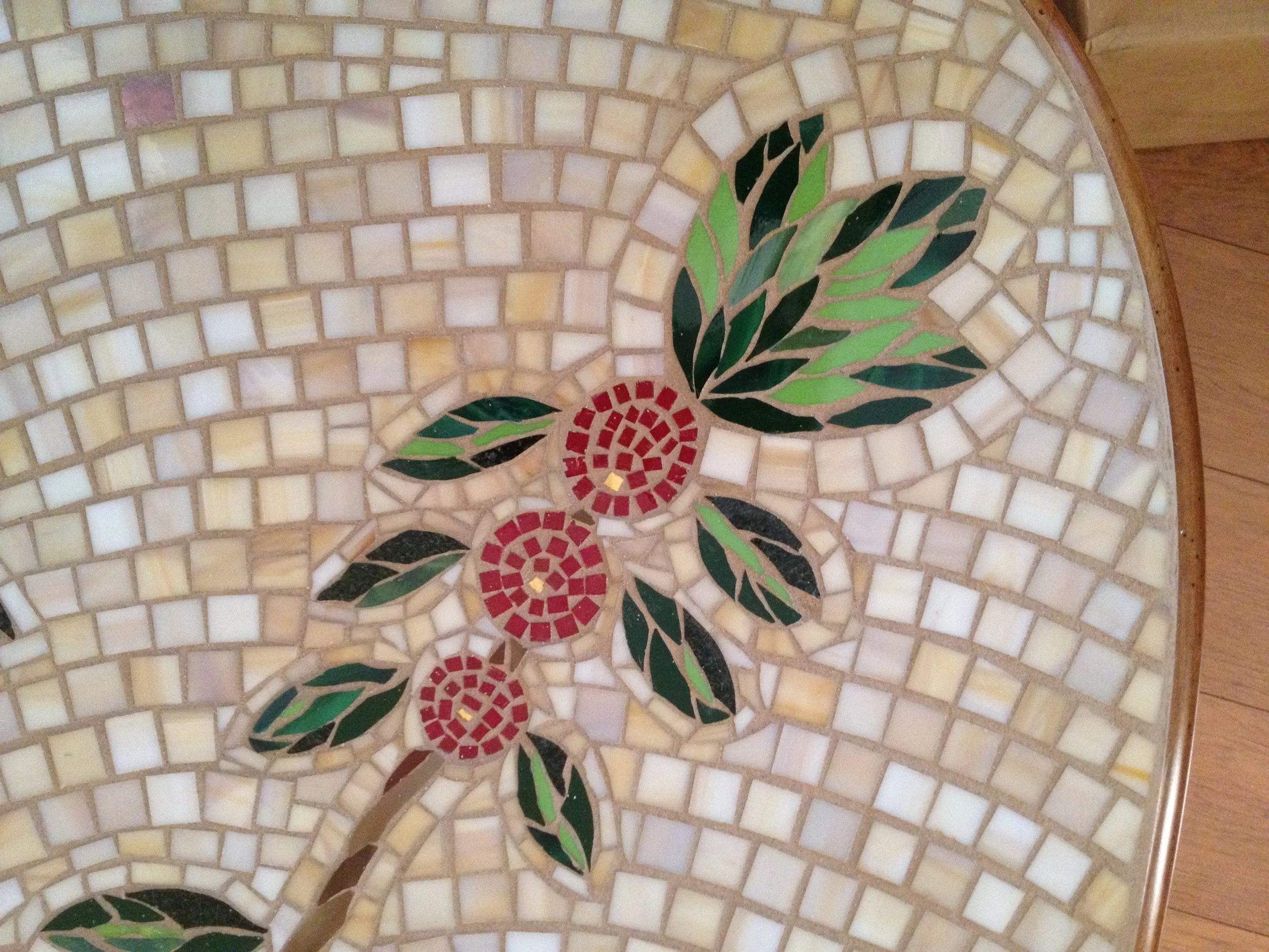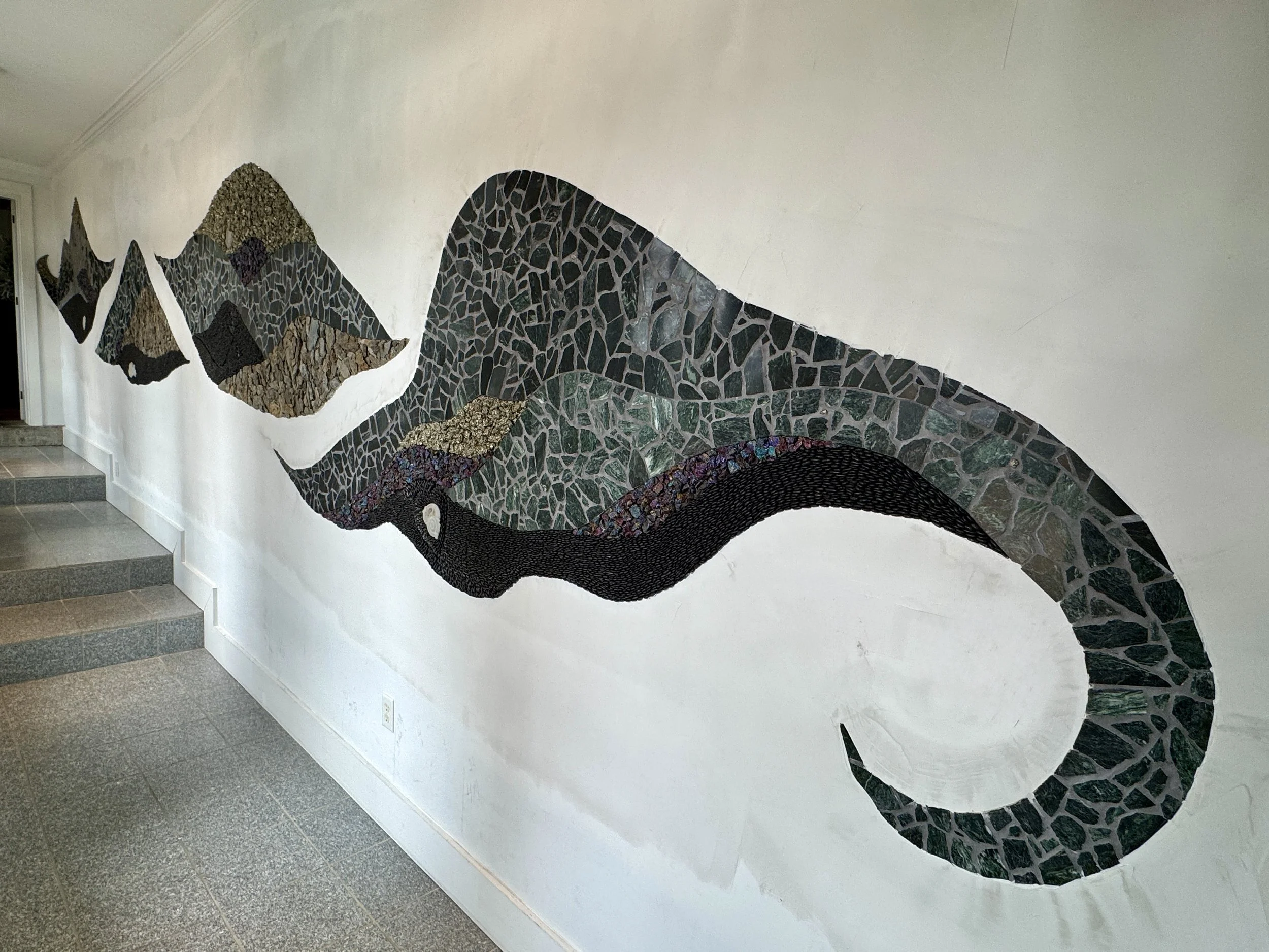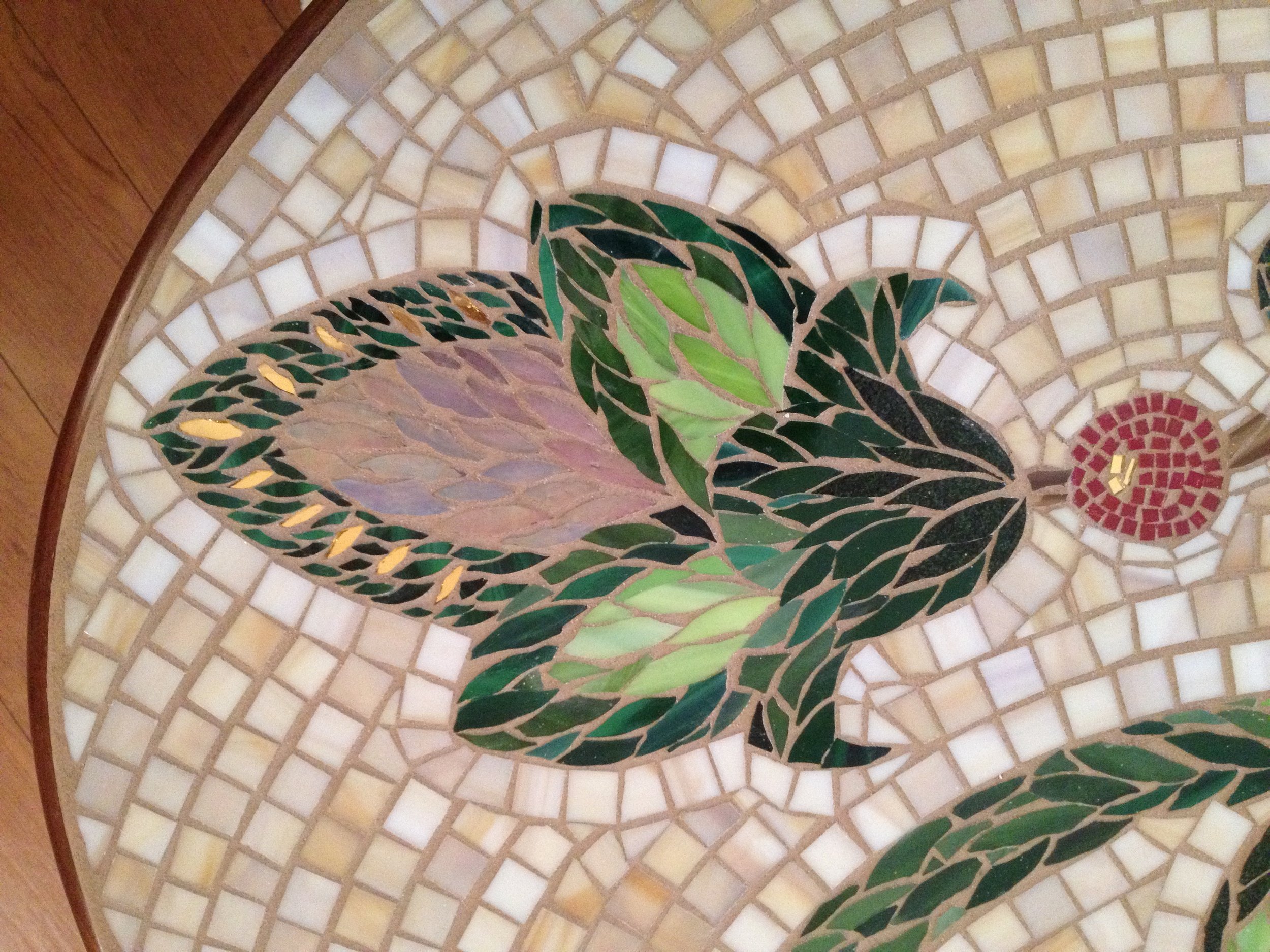 Here’s a sampling of mosaics I’ve made over the years. You’ll find wall mosaics towards the top of this page, and further down the page, some views of more architecturally-oriented work.