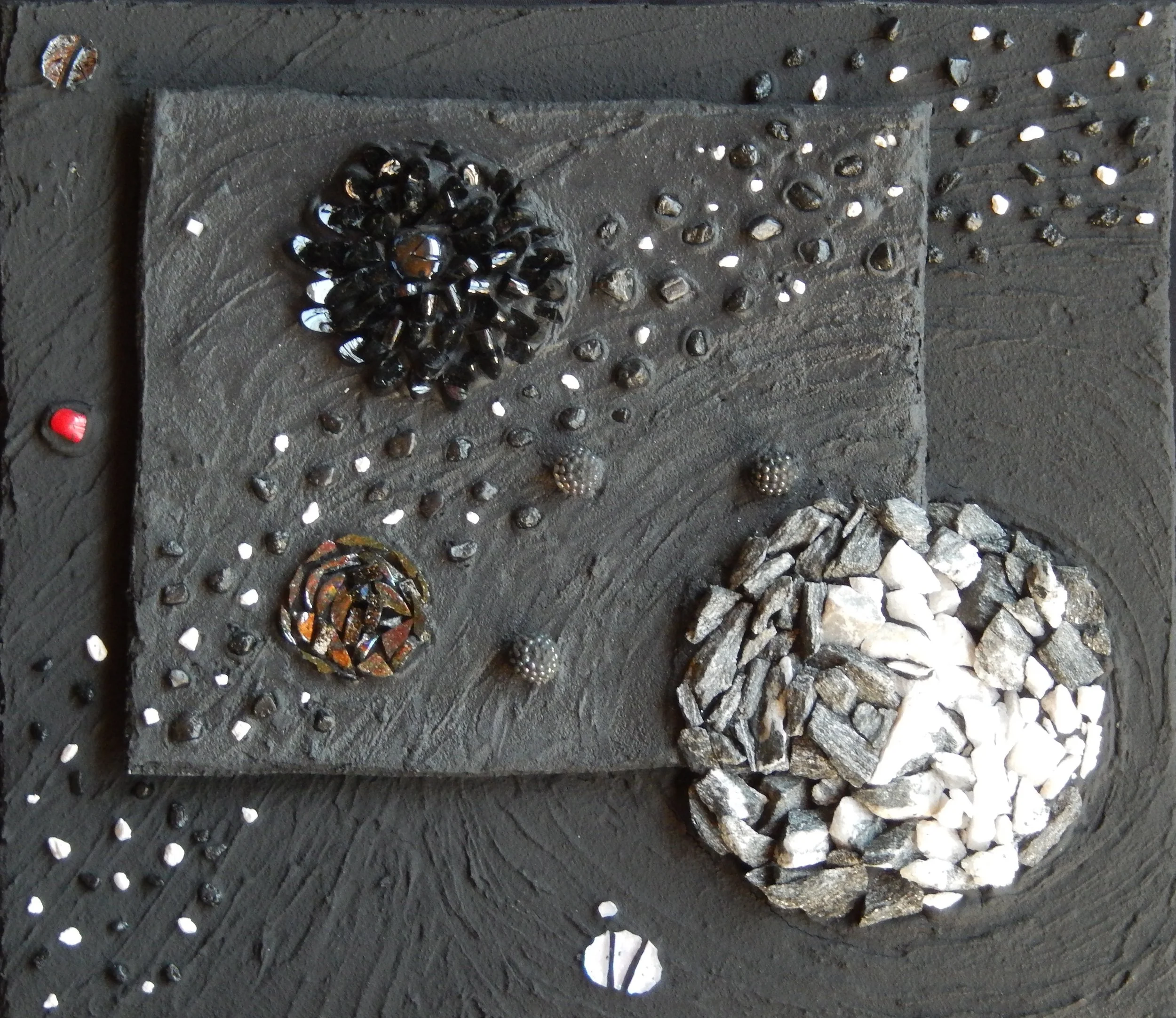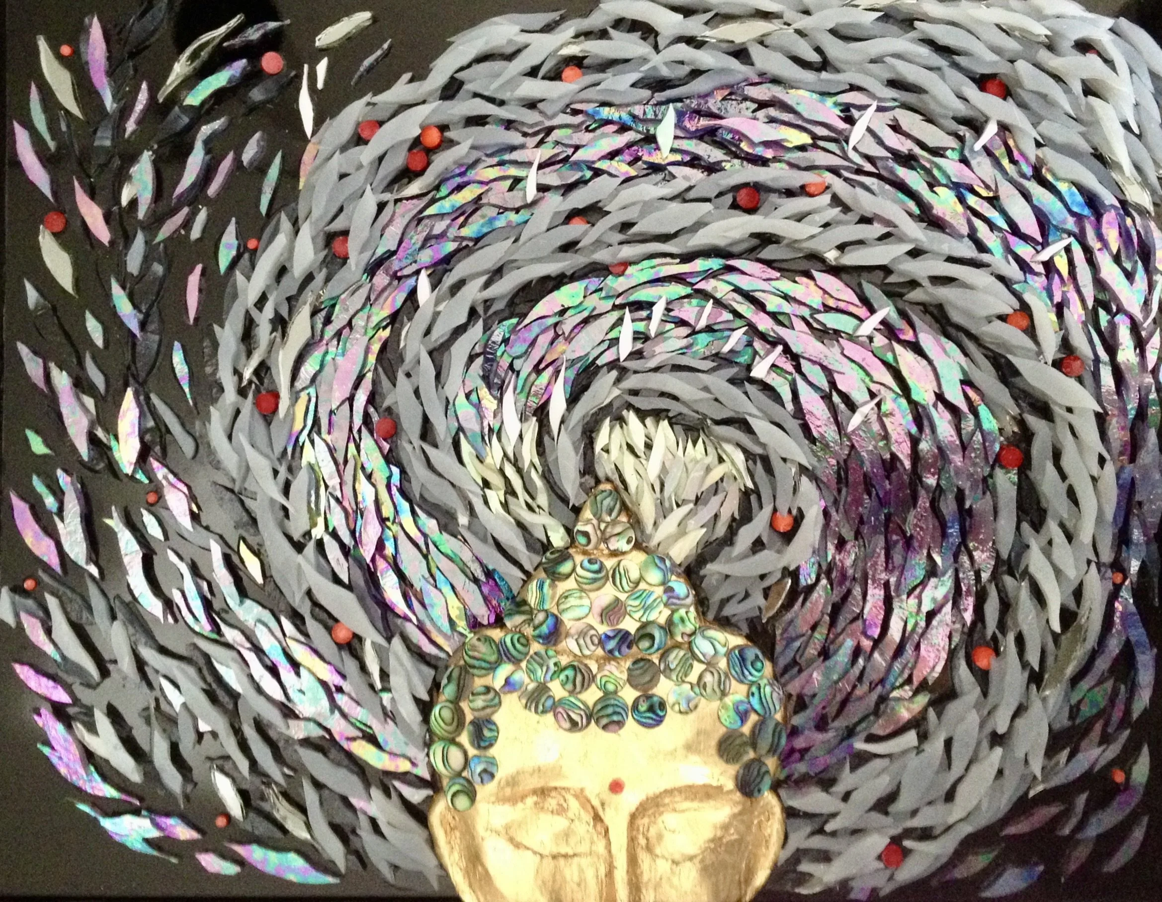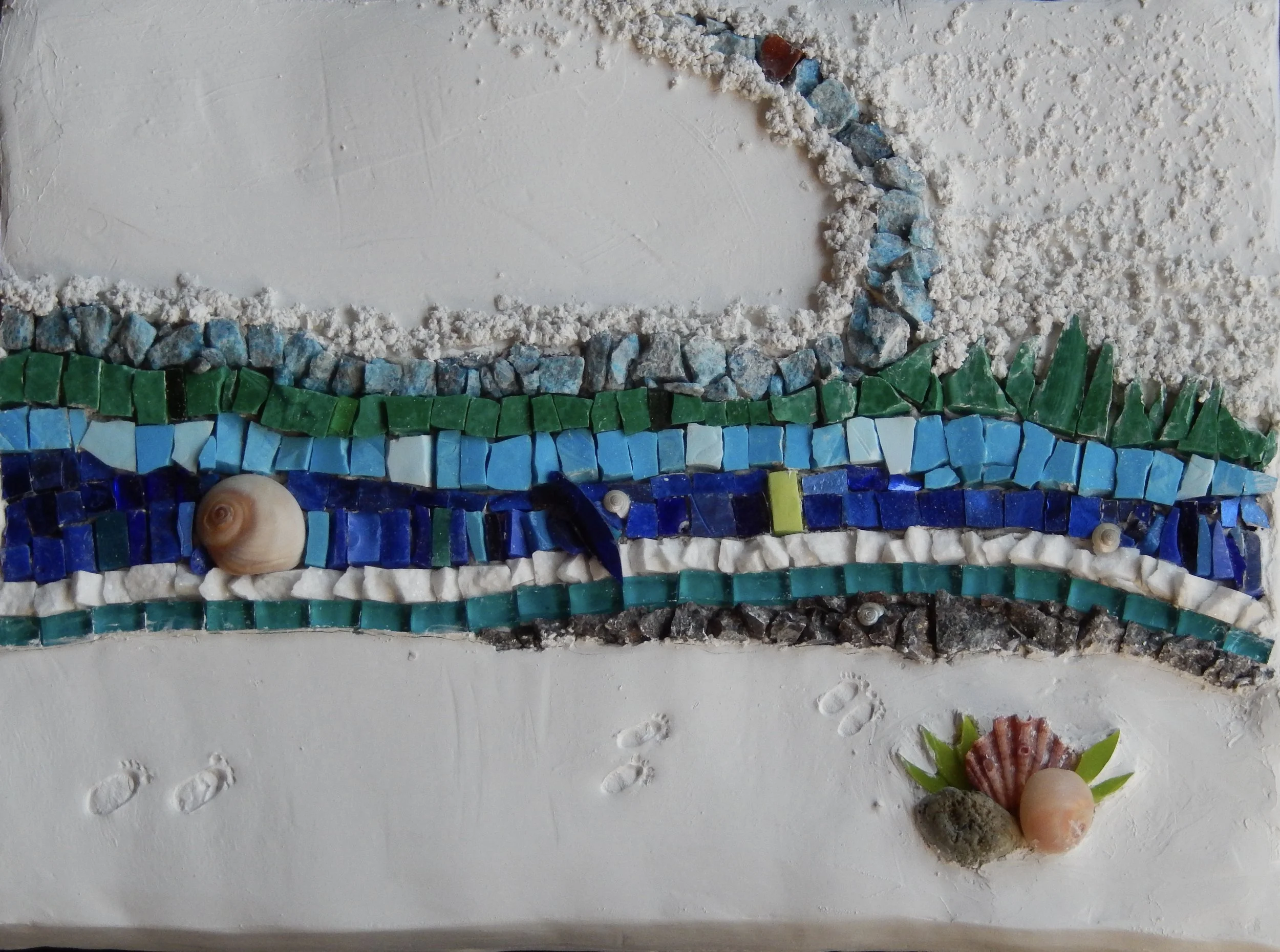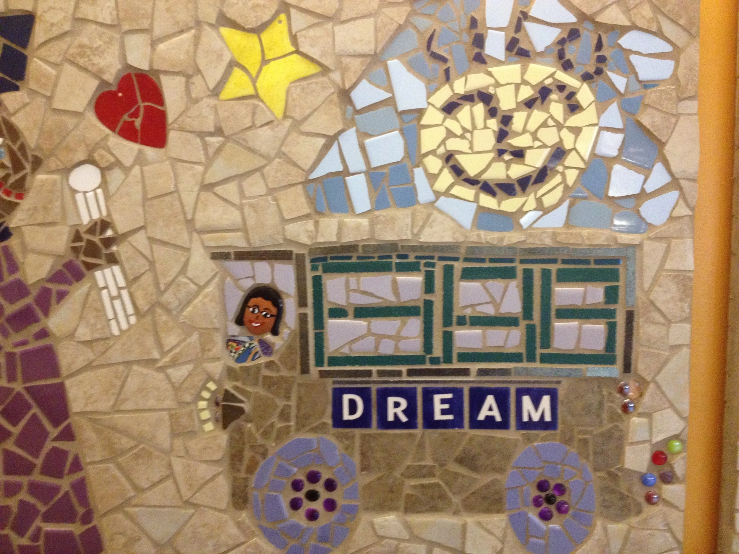For me, mosaic practice feels a lot like writing poetry. Both are image-intensive. Both require patience. Mosaic art is for the eye, and poetry is art for the mind’s eye. Mosaics uses tone glass, and found objects, while poetry uses phrases and fragments of ideas, but both assemble small bits of things in ways that make sense and meaning out of what we feel, what we see, and what we can’t see. Both rely on lines and line breaks, and both have high hopes for engaging the imagination of the people they encounter!